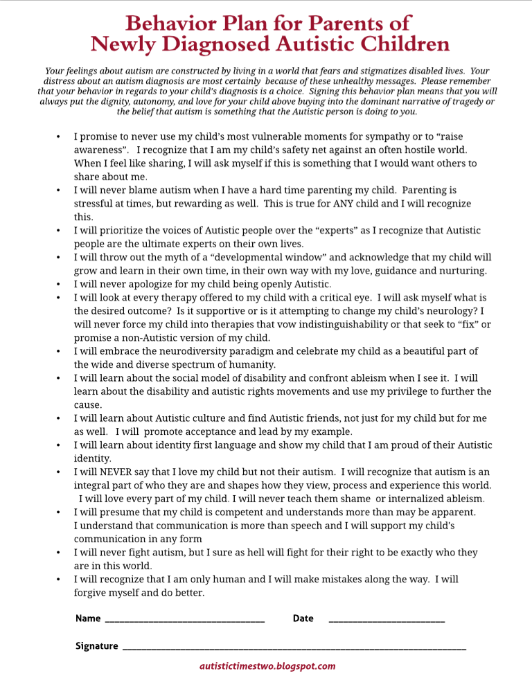 Behavior Plan For Parents of Newly Diagnosed Autistic Children